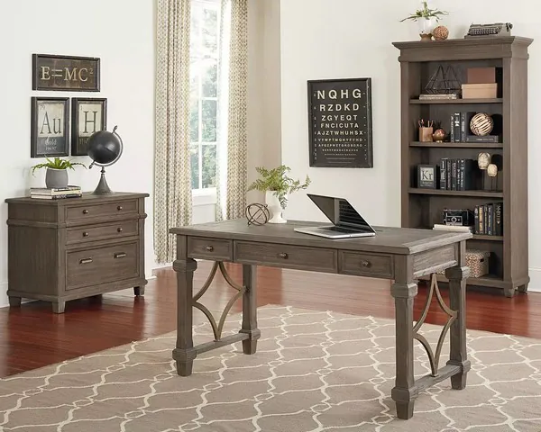 Carson Weathered Gray Brown 3 Piece Writing Home Office Set