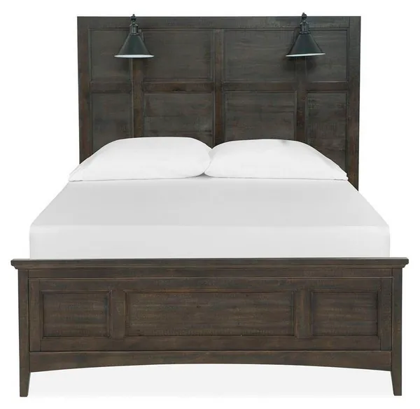 Cascara Point Graphite Queen Panel Bed with LED Light