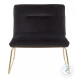The Casper Accent Chair by LumiSource brings comfortable seating in a stylish and slim design to your home. This chair features a padded seat and back upholstered in sleek velvet fabric. Gold metal sleigh legs provide durable support and contribute to the glam style of the chair. Add as seating to your living room, bedroom, or office with this simple yet stylish chair. Available in a variety of upholstery colors, choose the one that fits your space the best.Features