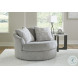 Don’t be limited by a lack of space. This oversized swivel accent chair makes family movie nights and get-togethers with friends all the more cozy. With its 360-degree swivel, it’s easy to switch from watching TV to talking to guests. A trendy gray hue offers the contemporary style you crave. So sit back and relax—this functional piece is ready to indulge you with everyday comfort.Features
