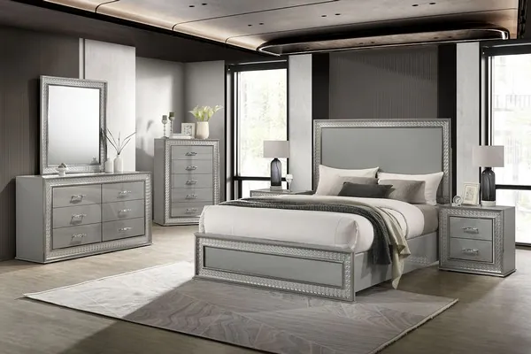 Cassiopeia Metallic Gray Panel Bedroom Set with LED Light