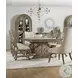 The drama of classic European design hits the heights with the grand Castella Rectangular dining room set with a scrolled trestle base. Imagine a 12th Century French chateaux that has been brought up to date without leaving a single charming detail behind. Linger at the opulent yet inviting rectangular table with a carved border and scrolled bases in harp-like shapes. The refined rustic Antique Slate finish projects laid-back luxury that is luminous and fresh. At 88 inches long with two 20-inch leaves, this table can host a veritable banquet.Features