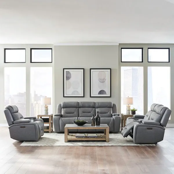 Chapman Aline Coal Leather 91" Zero Gravity Power Reclining Living Room Set with USB Charging and LED
