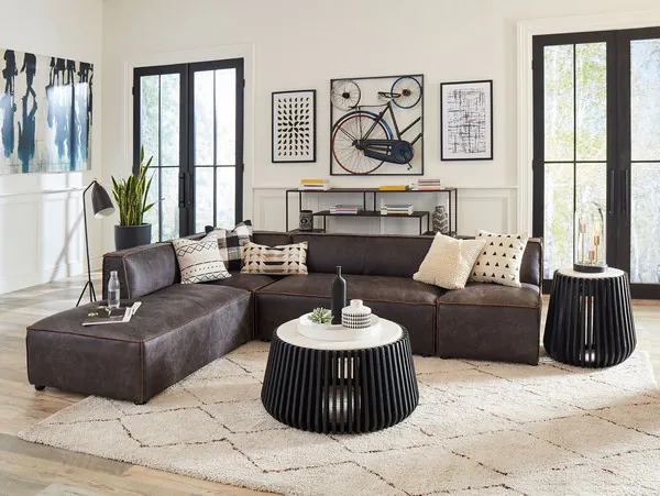 Chiavari Cocoa Brown Leather 112" Modular Sectional
