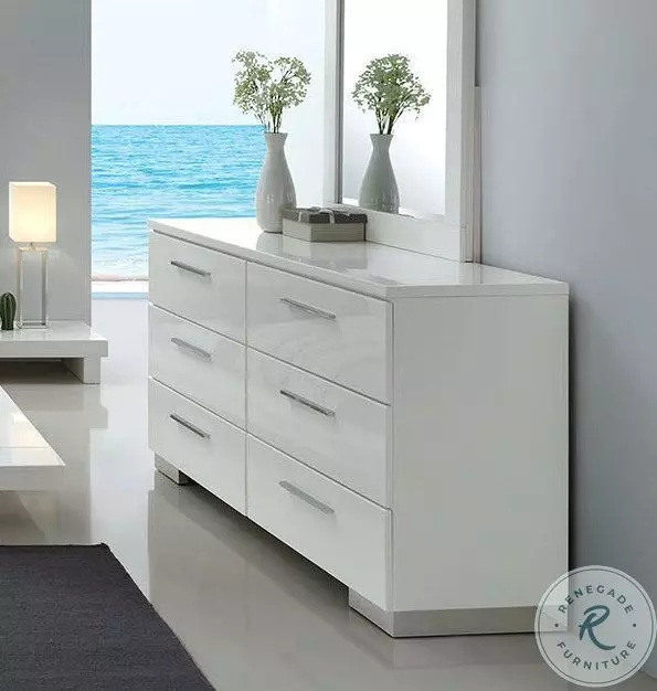 Take your bedroom to the next level with this modern dresser. The high gloss white finish brightens any setting.Features