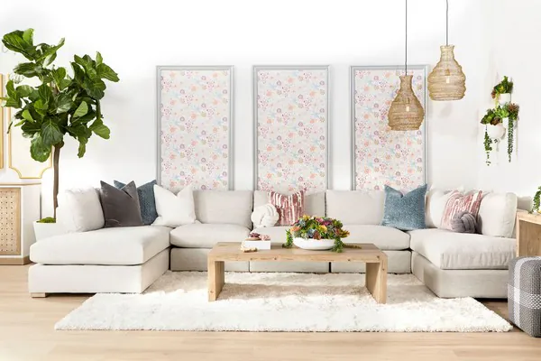 Clara Stone Basketweave Performance Fabric Modular LAF Sectional