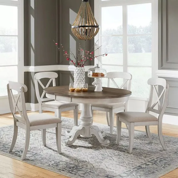 Coastal Isle Antique White And Weathered Pine Extendable Single Pedestal Dining Room Set