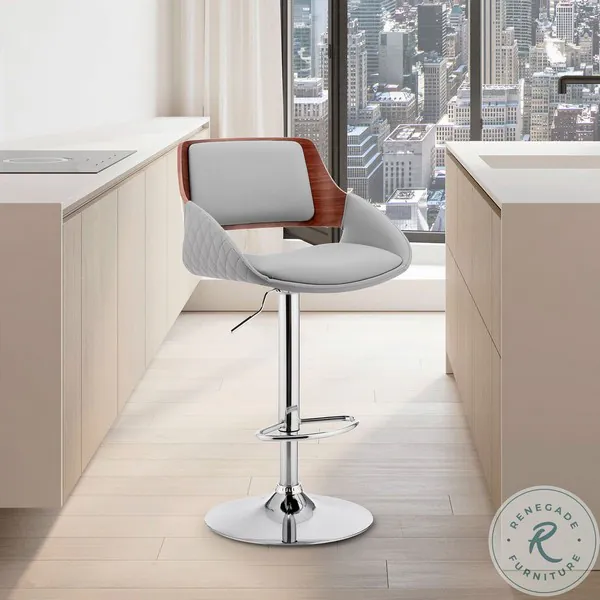 Colby Gray Faux Leather And Chrome Adjustable Bar Stool
