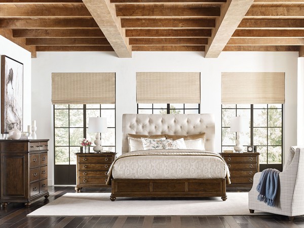 Commonwealth Herndon Medium Stain King Upholstered Panel Bed