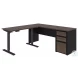 Connexion is a contemporary and durable collection that features a wide variety of configuration options that will adapt to your specific needs. The desk is made of a durable 1“ commercial grade work surface with melamine finish that resist scratches, stains and wear. The electric mechanism allows you to quickly and quietly adjust the height of the table from 28“ to 45“. The control button is located on the front edge of the work surface for an easy access. Voltage : 110v. The l-desk features an impact resistant pvc edge, classic moldings and a modesty panel on the credenza. Grommet is available on the credenza for efficient wire management. The pedestal offers two utility drawers and one file drawer with letter/legal filing system. Drawers on ball-bearing slides for smooth and quiet operation. One lock secures bottom two drawers. The credenza and the height adjustable table meet or exceed ansi/bifma performance standards. The station is fully reversible. Also available in slate and sandstone finish. Overall dimensions : 71. 1“ x 70. 9“ x 30. 4“. Credenza : 71. 1“ x 22. 4“ x 30. 4“. Height adjustable table : 47. 6“ x 24“ x 28“ to 45“.Features