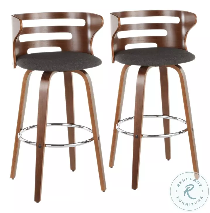 Cosini Walnut And Charcoal Fabric Swivel Bar Stool Set Of 2