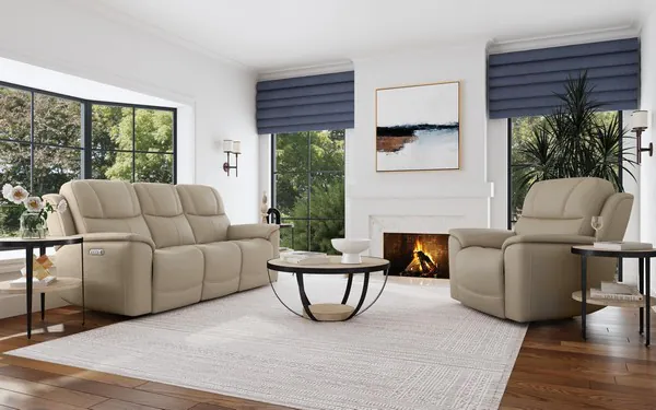 Crew Pebble Power Reclining Living Room Set with Power Headrests And Lumbar