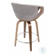 Curvini Walnut Wood And Light Grey Fabric Swivel 24'' Counter Height Stool Set Of 2