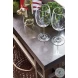 - Sideboard features crafted from wood, metal, and travertine, stained travertine and natural driftwood gray finish, stained travertine top, travertine top 30% acrylic sheen to aid in stain resistance, 2 felt lined drawers, left drawer divided for silver, stationary wood shelf at bottom, finish back and textured metal base