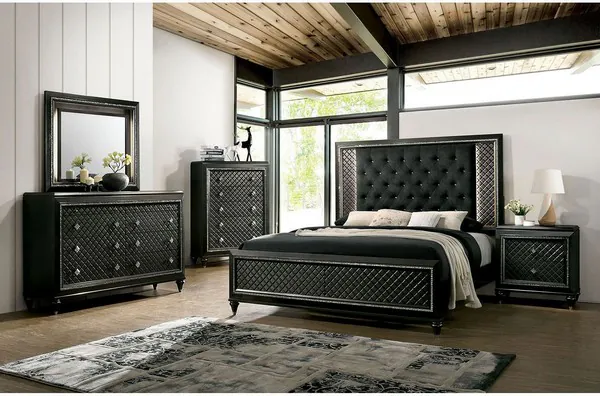 Demetria by Furniture of America. Give your house a high roller suite with this ravishing bedroom Collection. Every single inch of this piece holds something for you to enjoy all the way down to the silver toe carved bun feet.
