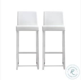 Denmark White Stainless Steel Counter Height Stool Set of 2