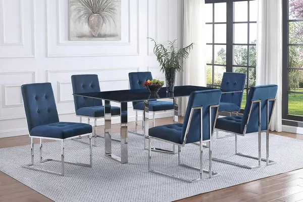 Desden Gray Marble And Stainless Steel 79" Rectangular Dining Table