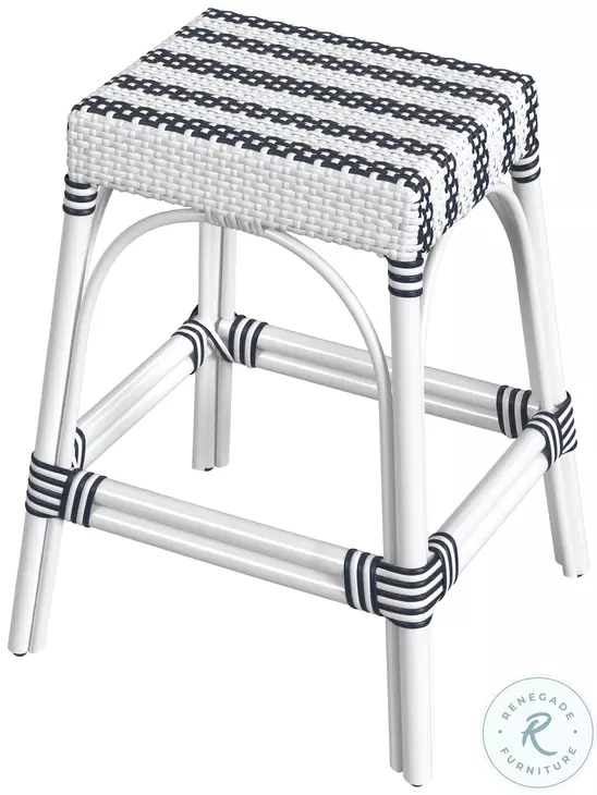 Designer's Edge Robias Distressed White Rattan 24" Striped Counter Height Stool