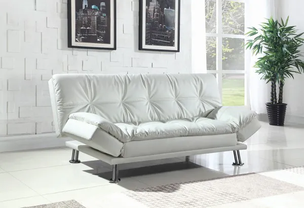 This casual styled futon group features items that are made for relaxing with a relaxed style. Each piece in this group is extremely casual creating an environment where you can kick off your shoes to enjoy TV, books or studying. The seats are covered in pillow topped padding and the chrome legs complete the look with a contemporary accent.