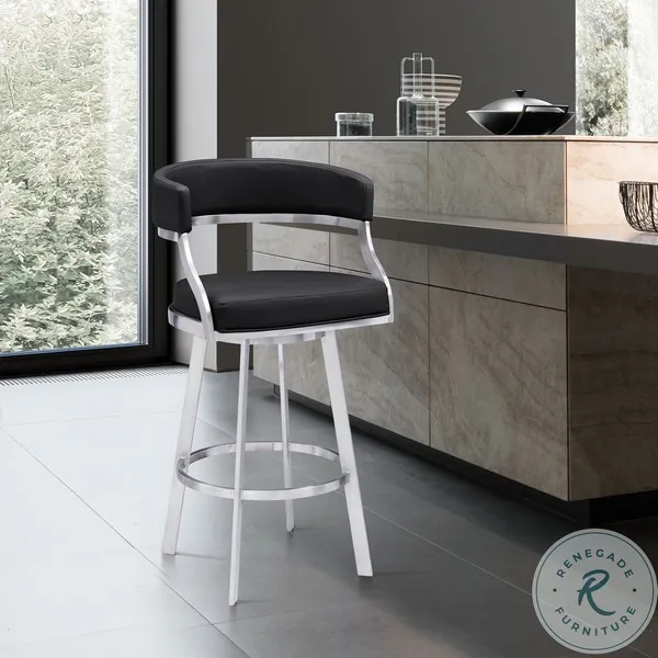 Dione Black And Brushed Stainless Steel 26" Swivel Counter Height Stool