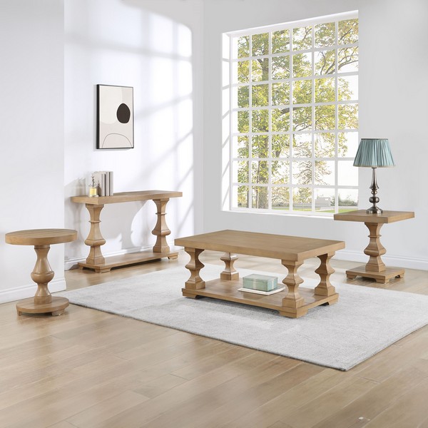 Architectural design and simplicity become one in the Dory Occasional Table Collection. Plank effect tops are accented by unique pedestal bases for a look that can't be ignored. Sturdily constructed of hardwood solids and mindi veneers in a subtle ebony finish. Options abound with your choice of a cocktail table, square end table, round end table or sofa table.