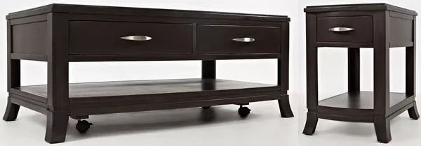 Easy curves and subtle style make this occasional collection a natural fit for any decor.The tables feature sturdy construction and a rich finish with brushed nickel hardware.Finish your room with these great pieces to create an inviting and posh space.
