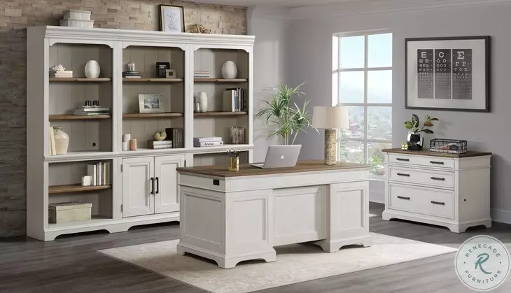 Drake Home Office Rustic White and French Oak 60" Home Office Set