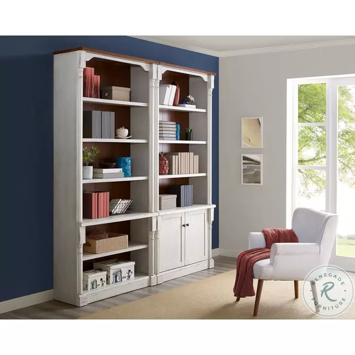 Reminiscent of that farmhouse tucked behind the rolling hills, the durham open bookcase brings the casual cottage look to a more formal setting. With it"s weathered wire brushed chalk finish, rustic knotty cherry tops and antiqued finished hardware, durham will meet all your home and office needs.Features