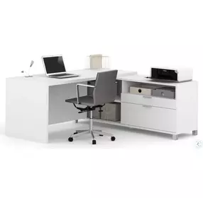 Echo Pure White L Shaped Desk with Mobile File Cabinet