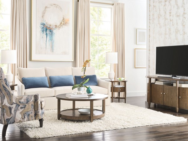 Eldon Medium Stain Round Cocktail Table with 6 Casters