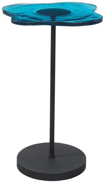 Elijah Matte Black and Blue Free Form Glass Top Accent Table