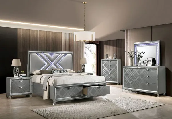 Emmeline Silver Upholstered Panel Storage Bedroom Set