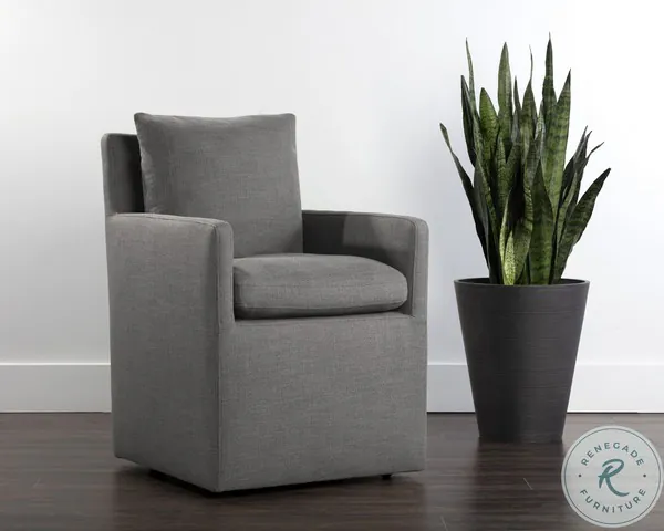 Emrys Smoke Fabric Glenrose Wheeled Dining Armchair