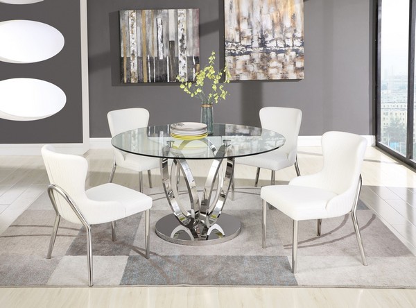 Evelyn Clear Glass And Polished Stainless Steel Dining Room Set