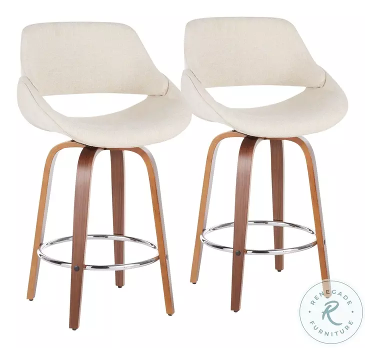 Fabrico Walnut And Cream Swivel Counter Height Stool Set Of 2 with Round Footrest