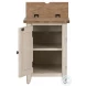 Morning coffee just got better with the Farmhouse Reimagined door chair side table to set your coffee cup on. Crafted of pine and poplar solids with pine and cathedral hickory veneers, this piece features an antique white finish with a chestnut top, appealing brass knob hardware and wood framed planked door, additional storage with one adjustable shelf behind the door, flip-lid section on top that reveals power supply of 3 receptacles and 2 USB ports, anchored by a softly rounded pilasters with tapered feet. This gorgeous farmhouse side table would make a great addition to any space.Features