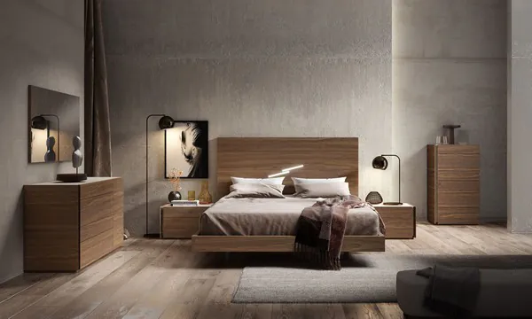 The Faro premium bedroom features a minimalistic, yet classy design which looks striking in any decor. The bed comes in a warm wenge wood veneer, which complements the low the profile aesthetics. The case goods are also in a wenge wood veneer with light grey high gloss accents. The nightstands, chest, and dresser also feature a glass on top to prevent against damage to the lacquer. These are the same case goods that come with the Porto premium bedroom.