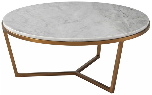 TA Studio No. 4 Fisher Brushed Brass Marble Round Cocktail Table