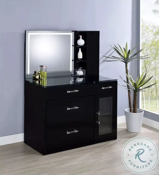 Flora Black High Gloss Vanity with Stool and LED Mirror