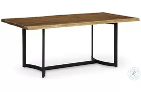 This dining table takes minimalism to the max. Crafted with a sleek and sophisticated touch, its solid wood table top features a natural live edge for a one-of-a-kind look. Your search for simple, contemporary design ends here.Features