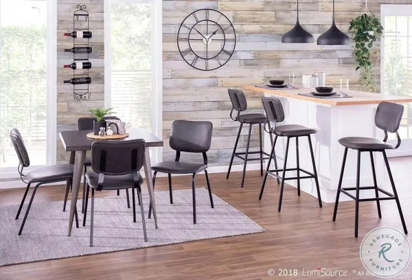 A contemporary take on a classic design, the Foundry Bar Stool by LumiSource features a curved backrest, black metal stationary legs, and a built-in footrest for added comfort. Upholstered in a luxurious faux leather with contrasting stitching, the Foundry Bar Stool is available in a variety of color options, sure to fit your space.