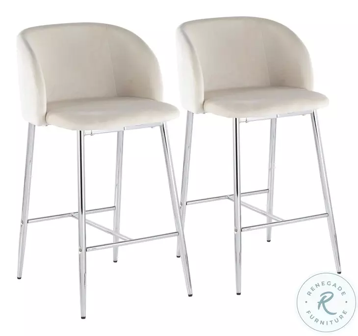 Fran Cream Velvet And Chrome Counter Height Stool Set of 2