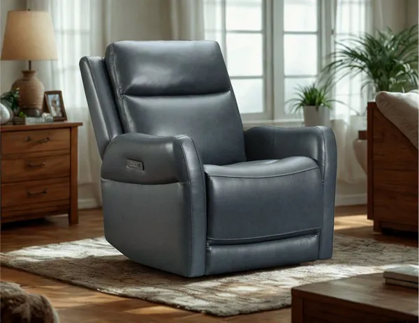 Frances Blue Leather Swivel Glider Power Recliner with USB Charging