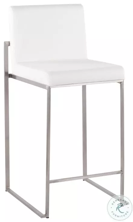 Fuji White Velvet And Stainless Steel High Back Counter Height Stool Set of 2