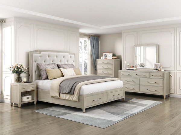 Genoa Light Oak Eastern King Upholstered Storage Platform Bed with USB Charging