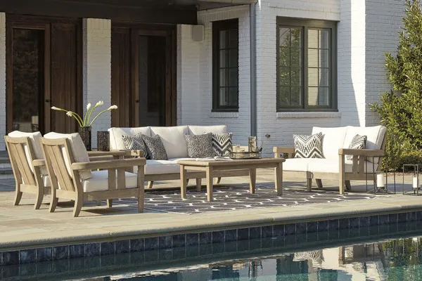Discover a high style alternative to traditional outdoor Gerianne Collection. With its teak like characteristics color, density and tight grain this eucalyptus sofa with cushion definitely has the corner on style. Better yet, it has the edge when it comes to affordability. Sustainably raised and harvested, this richly crafted eucalyptus sofa is easy on the eyes and the environment, while the plush cushion covered in fade-resistant Nuvella fabric provides stylish appeal.