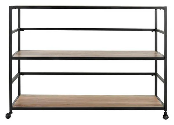 Glendora Black and Natural Storage Rack with Casters