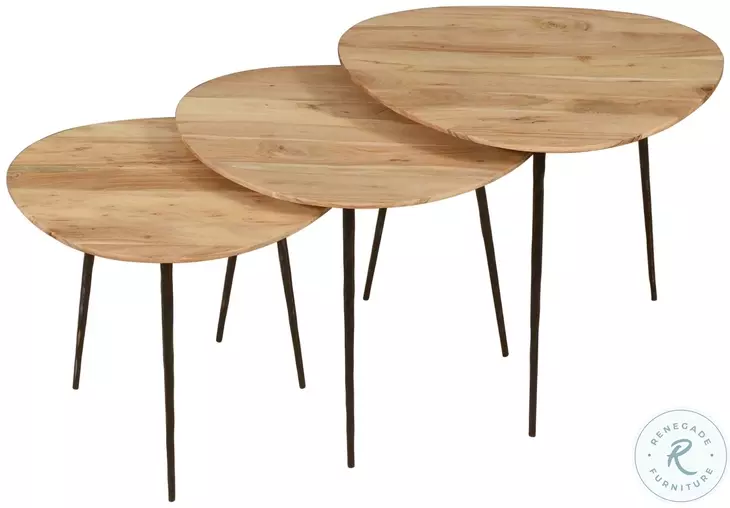 With an abstract rounded corner design, this set of three contemporary end tables neatly fit into each other for easy storage. Liven up your living space with a pop of modern style that matches a wide range of home decor.Features