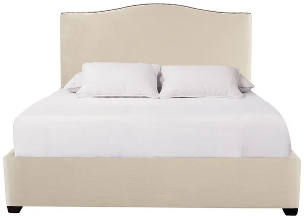 Graham Beige And Tan California King Upholstered Panel Bed with Nailhead Trim