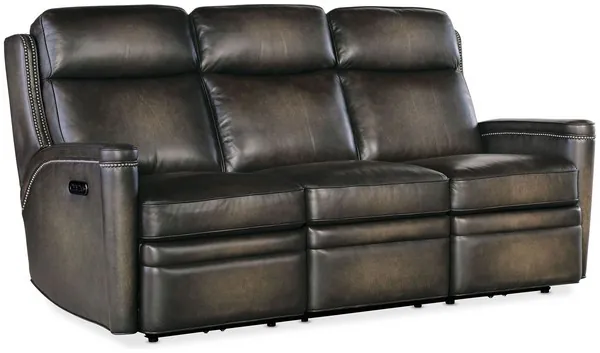Hamilton Grey Leather Power Reclining Sofa with Power Headrest